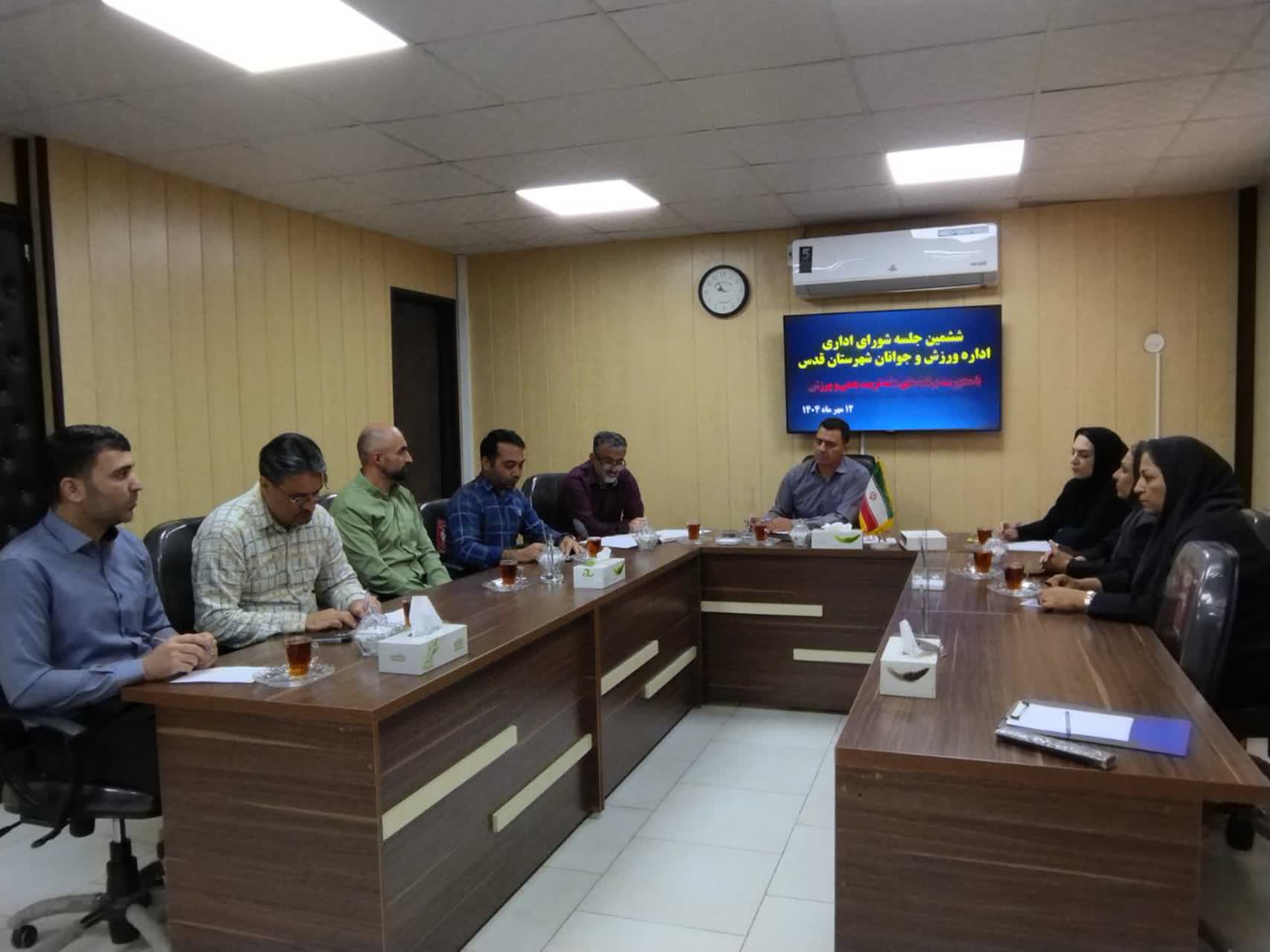 ششمین جلسه شورای ورزش کارکنان با هدف تدوین برنامه های هفته تربیت بدنی و ورزش در شهرستان قدس تشکیل شد.