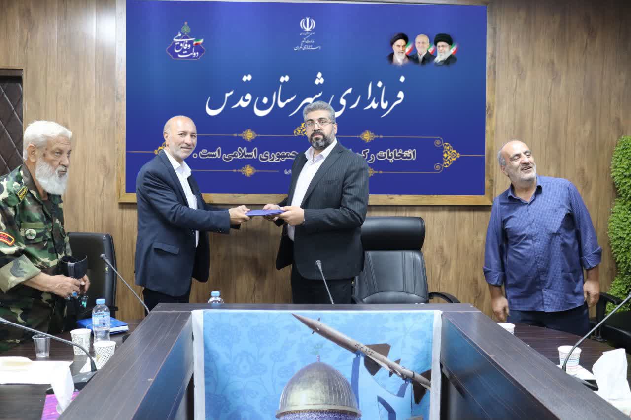 جمعی از اعضای بسیج پیشکسوتان جهاد و شهادت در دیدار با فرماندار شهرستان قدس، با اهدای لوح تقدیر، از خدمات و تلاشهای ایشان در مدیریت شهرستان قدردانی کردند.