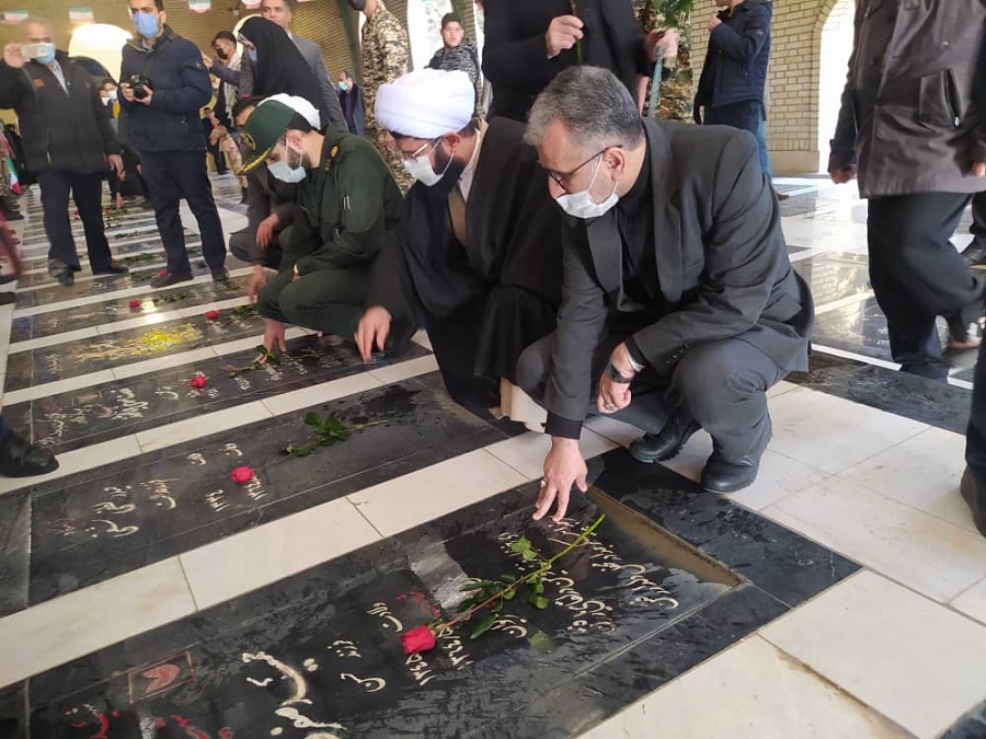 به مناسبت دهه بصیرت و سالروز شهادت سردار دل ها حاج قاسم سلیمانی مراسم غبار روبی و گلباران مزار شهدا شهرستان قدس برگزار شد