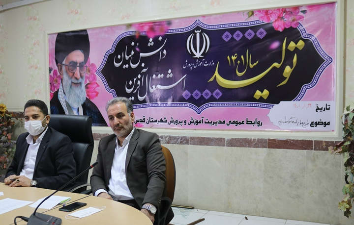 مدیر آموزش و پرورش شهرستان قدس در پایان از مدیران مدارس خواست دانش آموزان و معلمان مبتکر و خلاق شناسایی شوند تا با توجه به شعار سال که تولید؛ دانش بنیان، اشتغال آفرین است، آنها را مورد حمایت خود قرار دهیم.