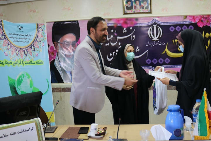 معاون پرورشی آموزش و پرورش شهرستان قدس در پایان از زحمات مراقبین سلامت با اهدای لوح تقدیر و هدیه تجلیل کرد.