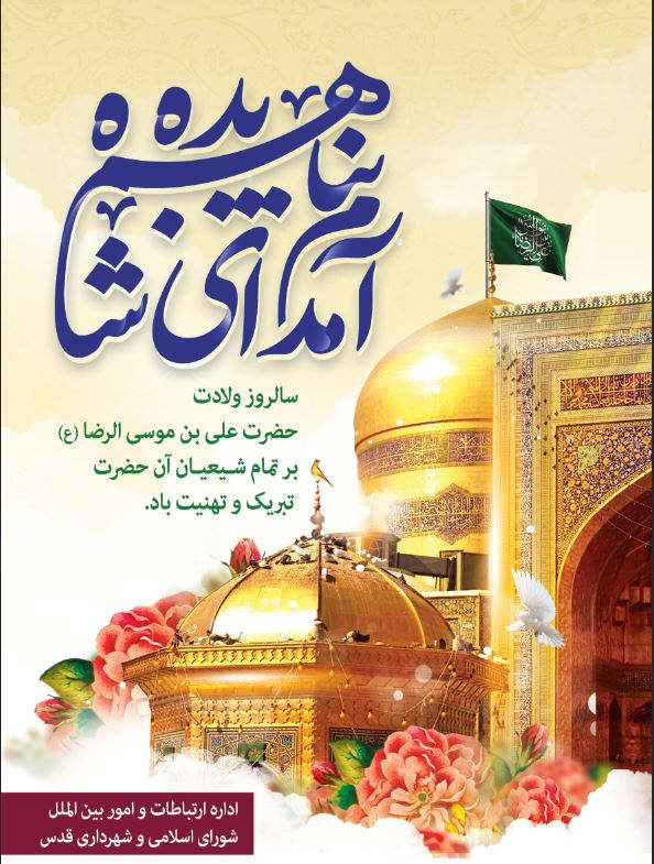 پیام تبریك مجموعه مدیریت شهری قدس به مناسبت فرارسیدن سالروز ولادت امام رضا علیه‌السلام