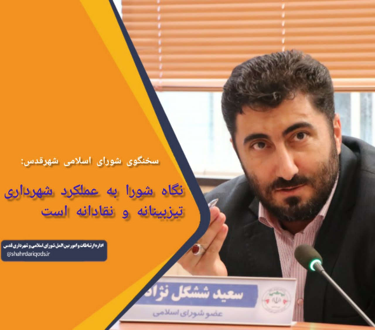 سخنگوی شورای اسلامی شهرقدس گفت: از آنجا که مهمترين کارويژه نظارتی شوراها، نظارت و کنترل بر عملکرد شهرداری است، شورای ششم نگاه تیزبینانه و نقادانه به عملکرد شهرداری دارد.