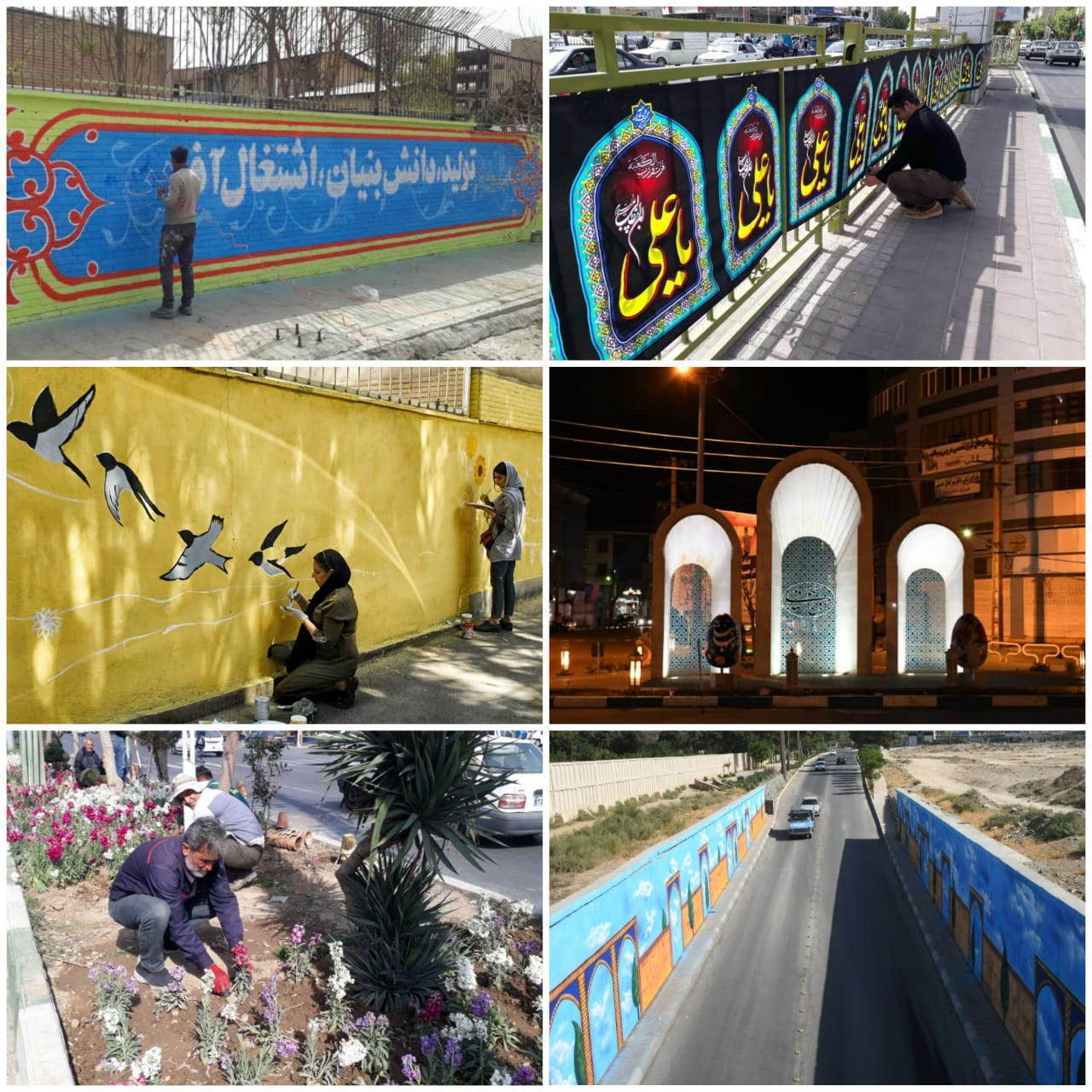 فروزان در ادامه به اقدامات این سازمان در حوزه زیباسازی اشاره کرد و گفت: در این زمینه، فضاسازی محیطی و ‌آذین‌بندی، نصب تابلوها، المان‌ها و احجام متناسب با مناسبت‌های ملی_مذهبی در شهر، رنگ‌آمیزی جداول و نیوجرسی‌ها، ساماندهی تبلیغات محیطی غیرمجاز و دریافت عوارض نصب تابلوهای تبلیغاتی صنوف، نقاشی دیواری و نورپردازی فضاهای شهری، پاکسازی محوطه‌ها و تعمیر و بازسازی مبلمان شهری را می‌توان برشمرد.