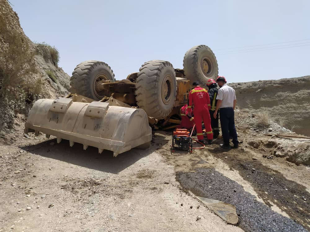راننده لودر واژگونشده در معدن شن و ماسه که بر اثر پرس شدن اتاقک راننده گرفتار شده بود، طی عملیاتی موفق توسط نیروهای سازمان آتشنشانی شهرداری قدس نجات یافت.