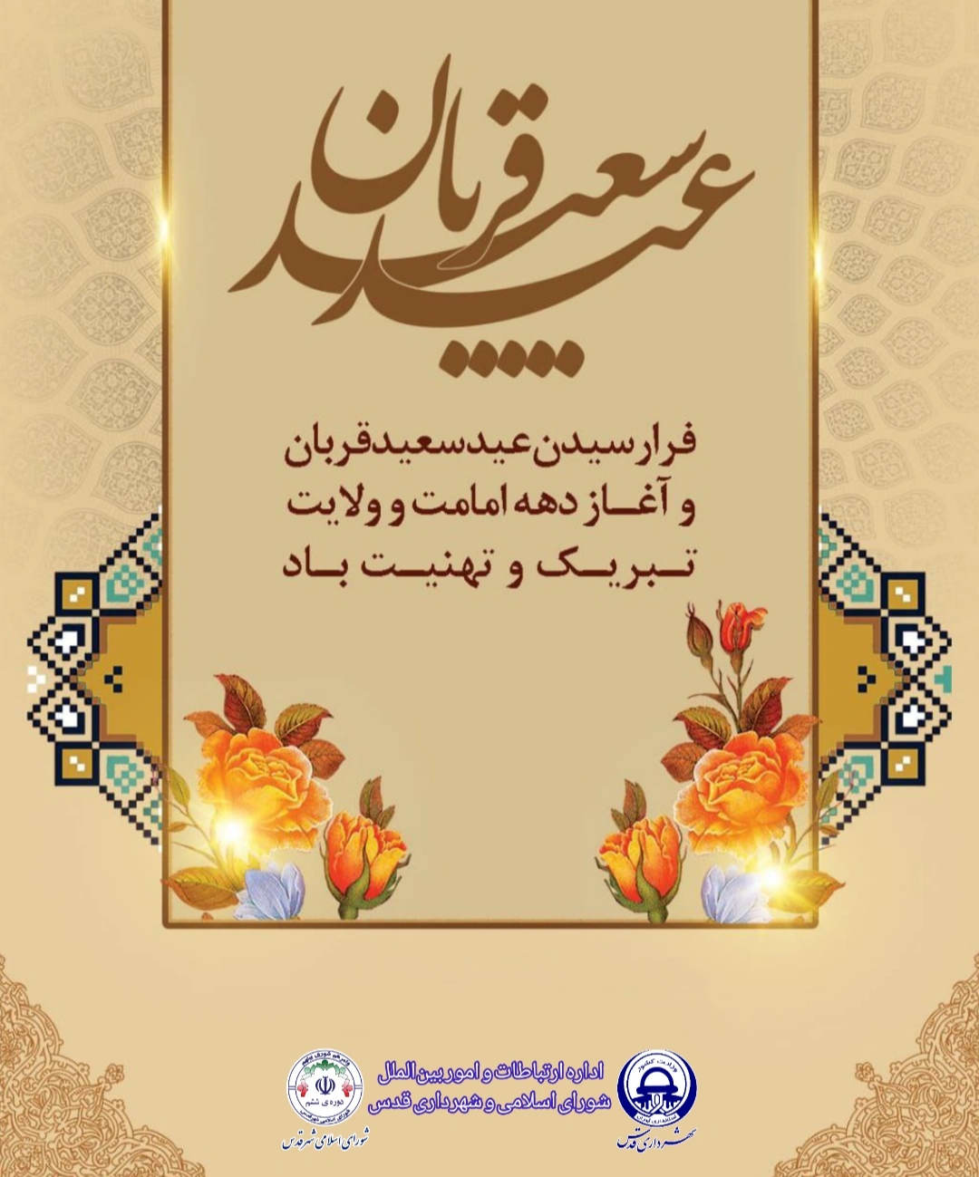 مجموعه مدیریت شهری قدس طی پیامی فرارسیدن عید سعید قربان و آغاز دهه ولایت را تبریک گفت.