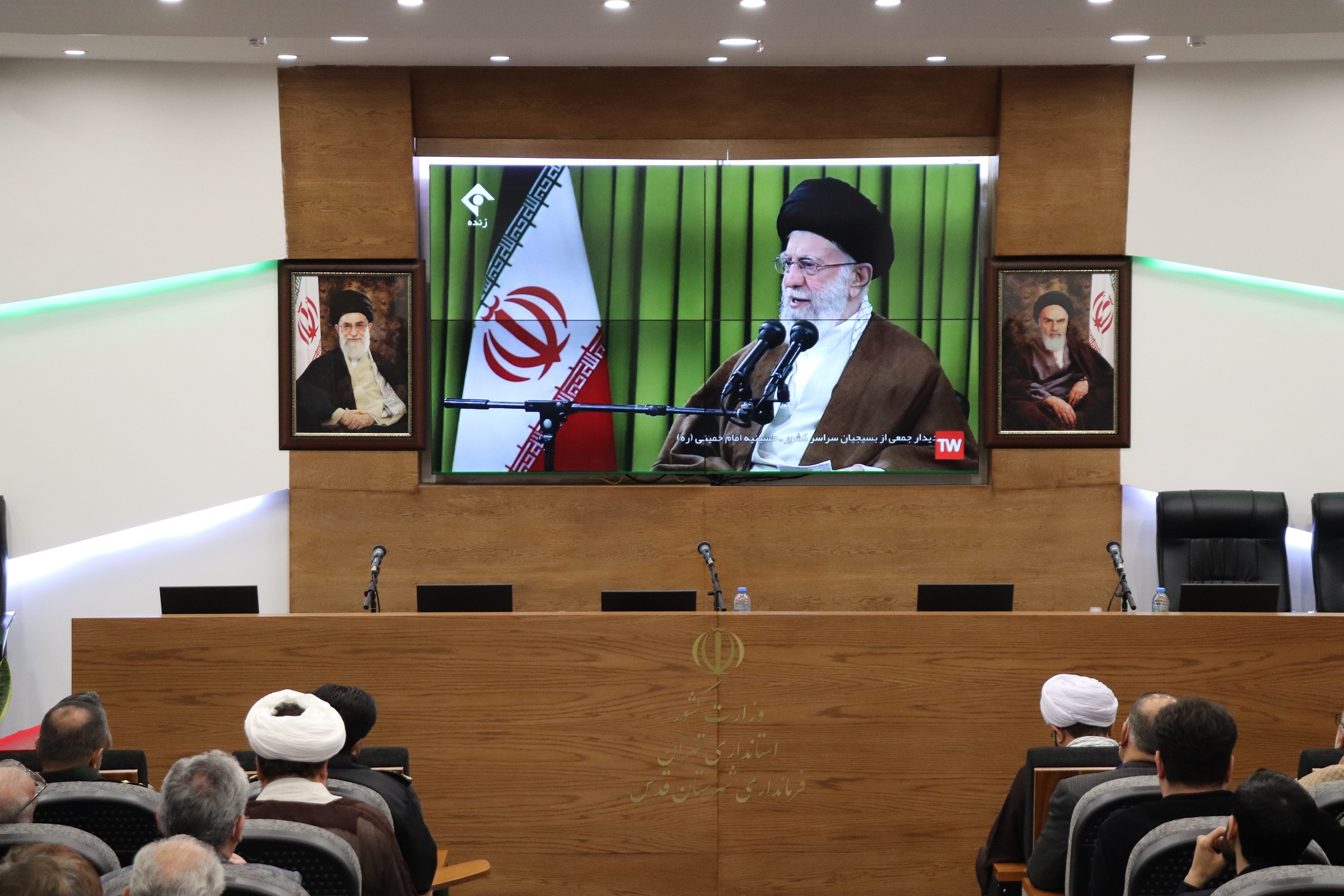 به گزارش روابط عمومی فرمانداری شهرستان قدس، به مناسبت فرا رسیدن هفته بسیج، پخش زنده سخنرانی رهبر معظم انقلاب(مدظله العالی) در شهرستان با حضور وحید گلیکانی فرماندار قدس، حجت الاسلام و المسلمین رضا جوکار امام جمعه، هادی حفیظی فرمانده ناحیه مقاومت بسیج حضرت مهدی موعود(عج) شهرستان، جمعی از بسیجیان و دیگر مسئولین در سالن همایش شهید فخریزاده این فرمانداری برگزار گردید.
